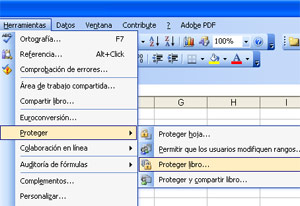 Excel es una de las aplicaciones más utilizadas en el departamento de administración de una empresa, y en las más pequeñas suele ser la única herramienta que se usa para llevar un control del ingreso y del gasto. En muchos casos se crean plantillas para el uso interno que conviene proteger. Para ello basta con que seleccionemos la opción de menú, Herramientas/Proteger/Proteger Libro. En la ventana emergente marcamos la casilla Estructura, ya que la opción Ventanas lo único que hace es restringir el tamaño de las mismas o su pòsición.
